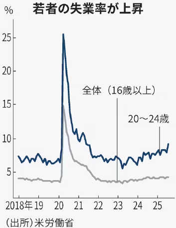 スタンフォード大学の研究によると、22〜25歳の雇用はわずか数年で約20%減少。大卒の若者の失業率も9%を超えました。