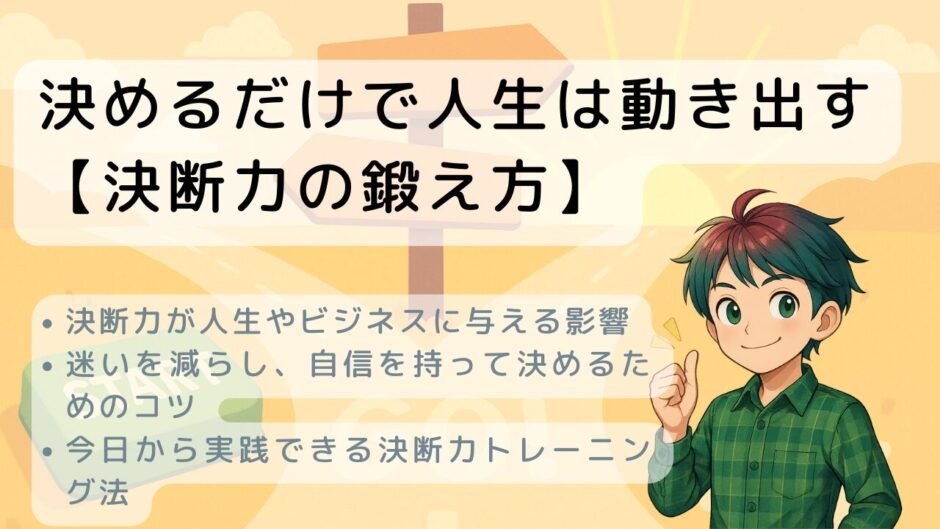 決断力は生まれつきの才能ではなく、鍛えることができます。この記事では、中高生や起業初心者でも身近な例から学べる「決断力の鍛え方」を紹介します。